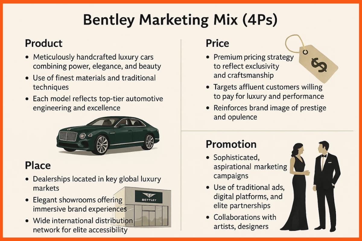 Bentley business strategy centers on producing ultra-luxury cars with top craftsmanship, targeting high-net-worth individuals, expanding in key global markets, and promoting brand exclusivity through personalized experiences and innovation.